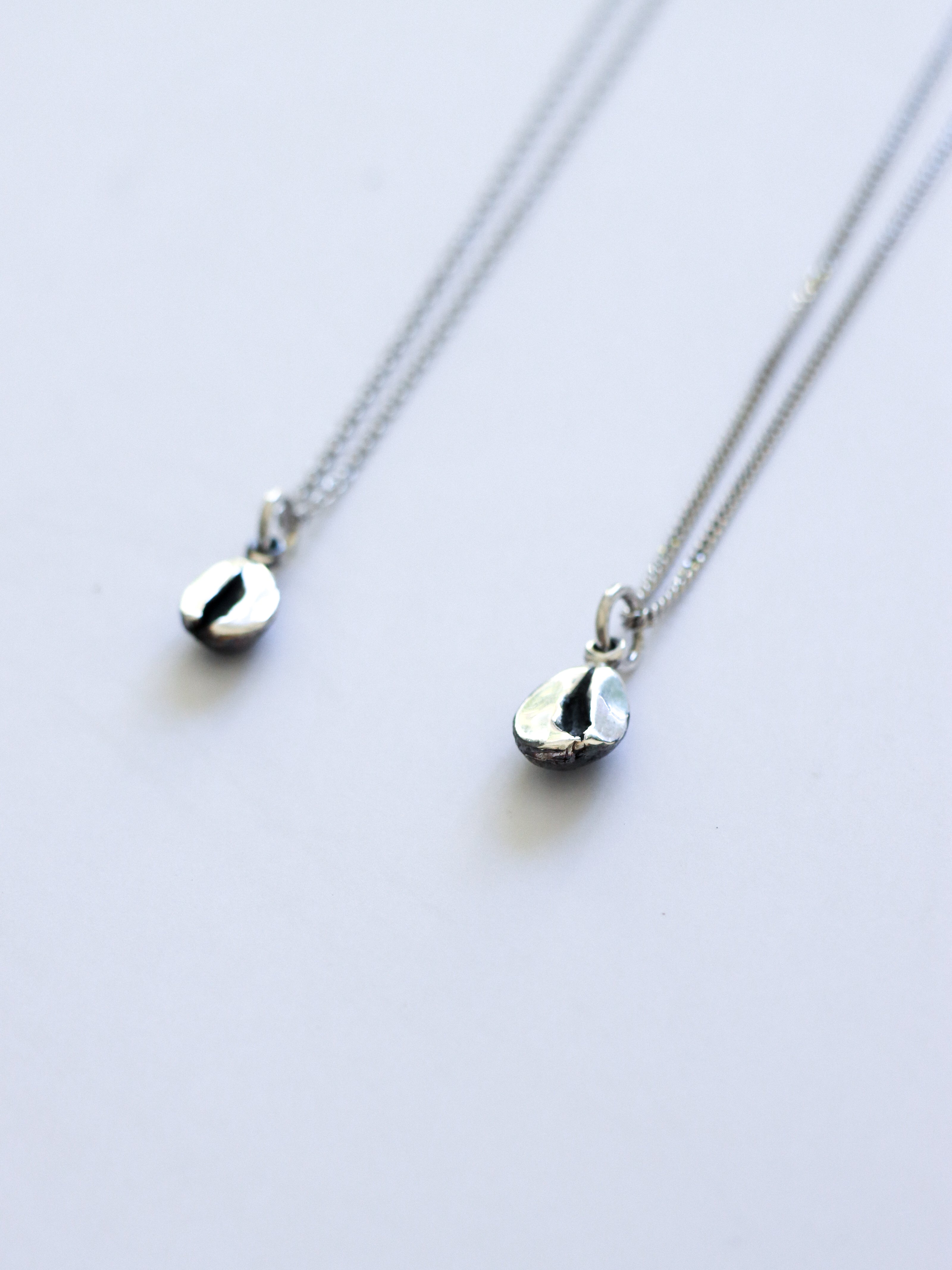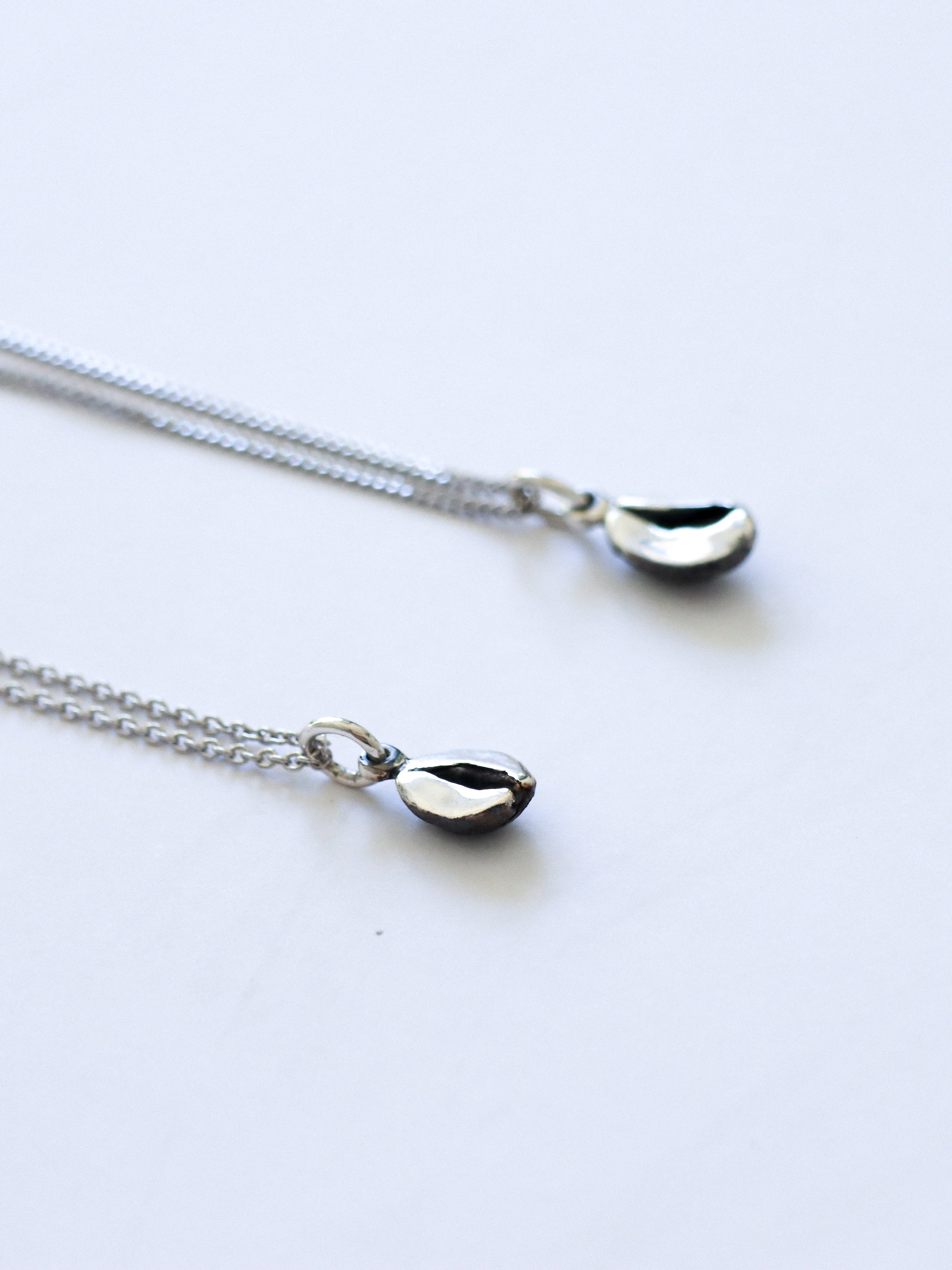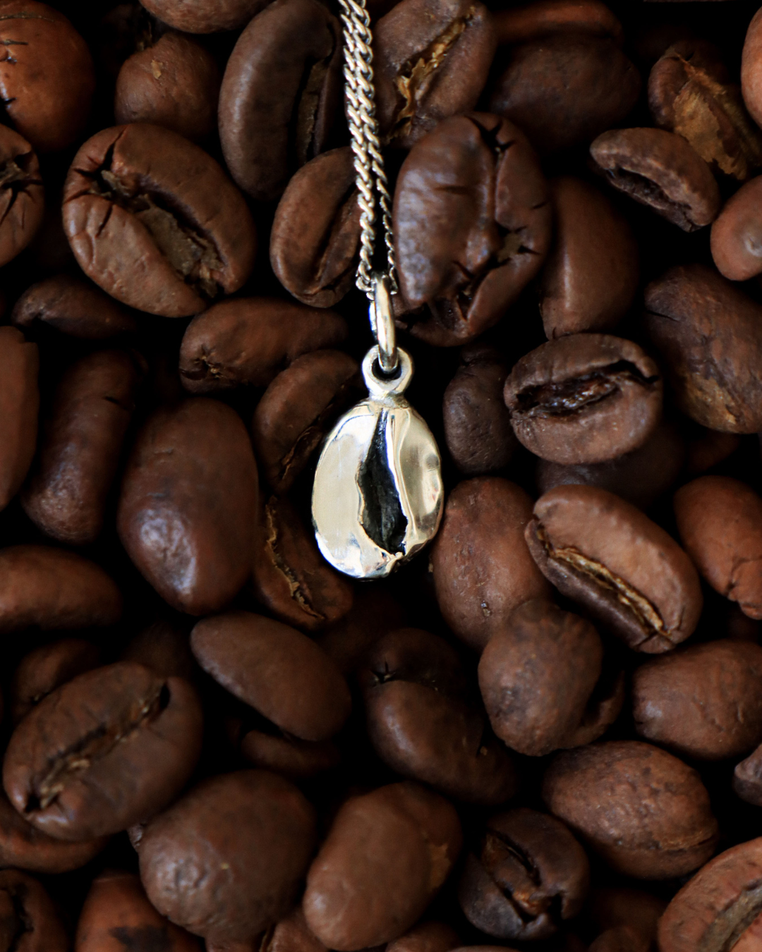 This unique pendant is crafted from sterling silver and cast from a real coffee bean, capturing every natural detail of its shape and texture. Each piece is carefully finished by hand, ensuring a smooth and refined surface while preserving the bean’s authentic form.