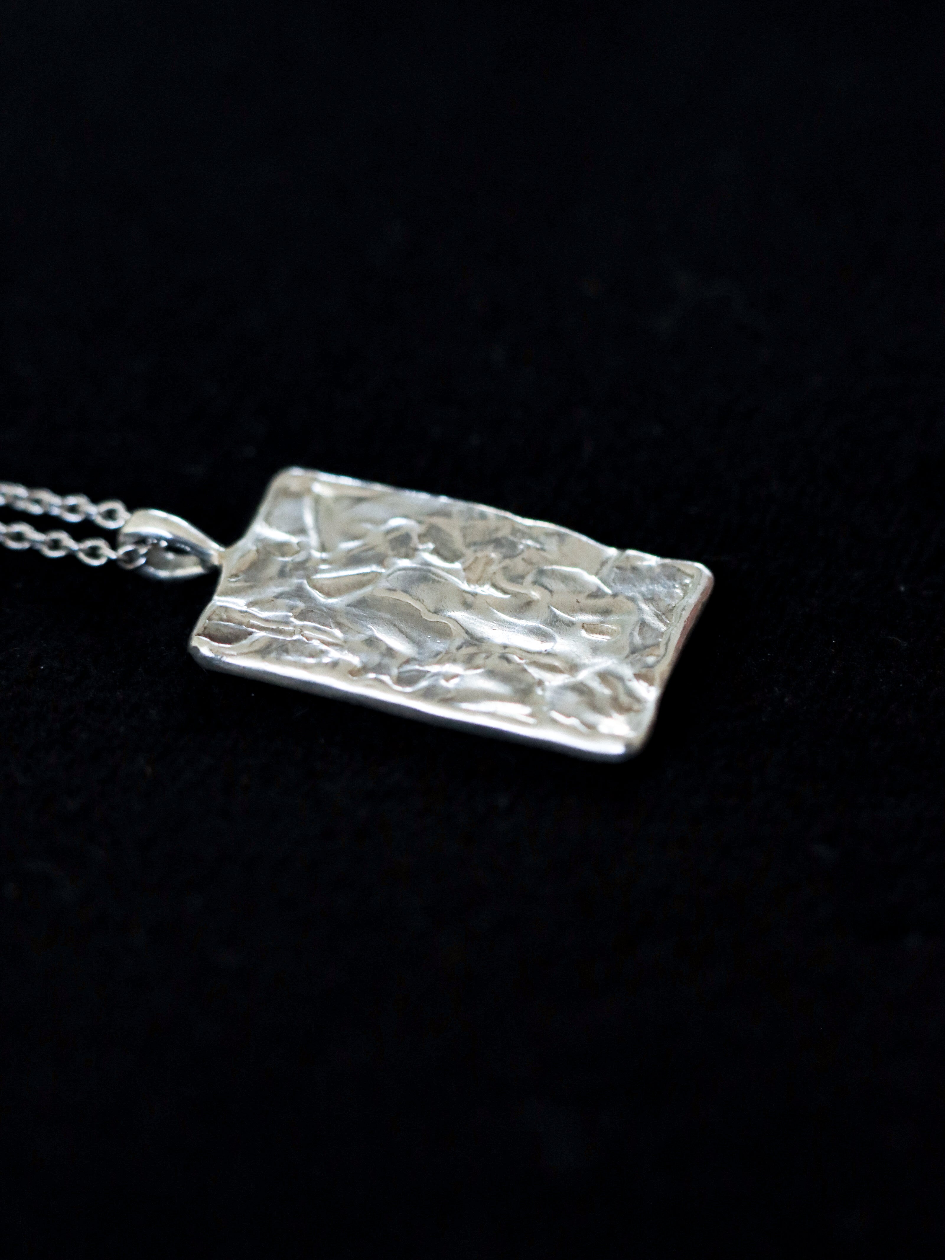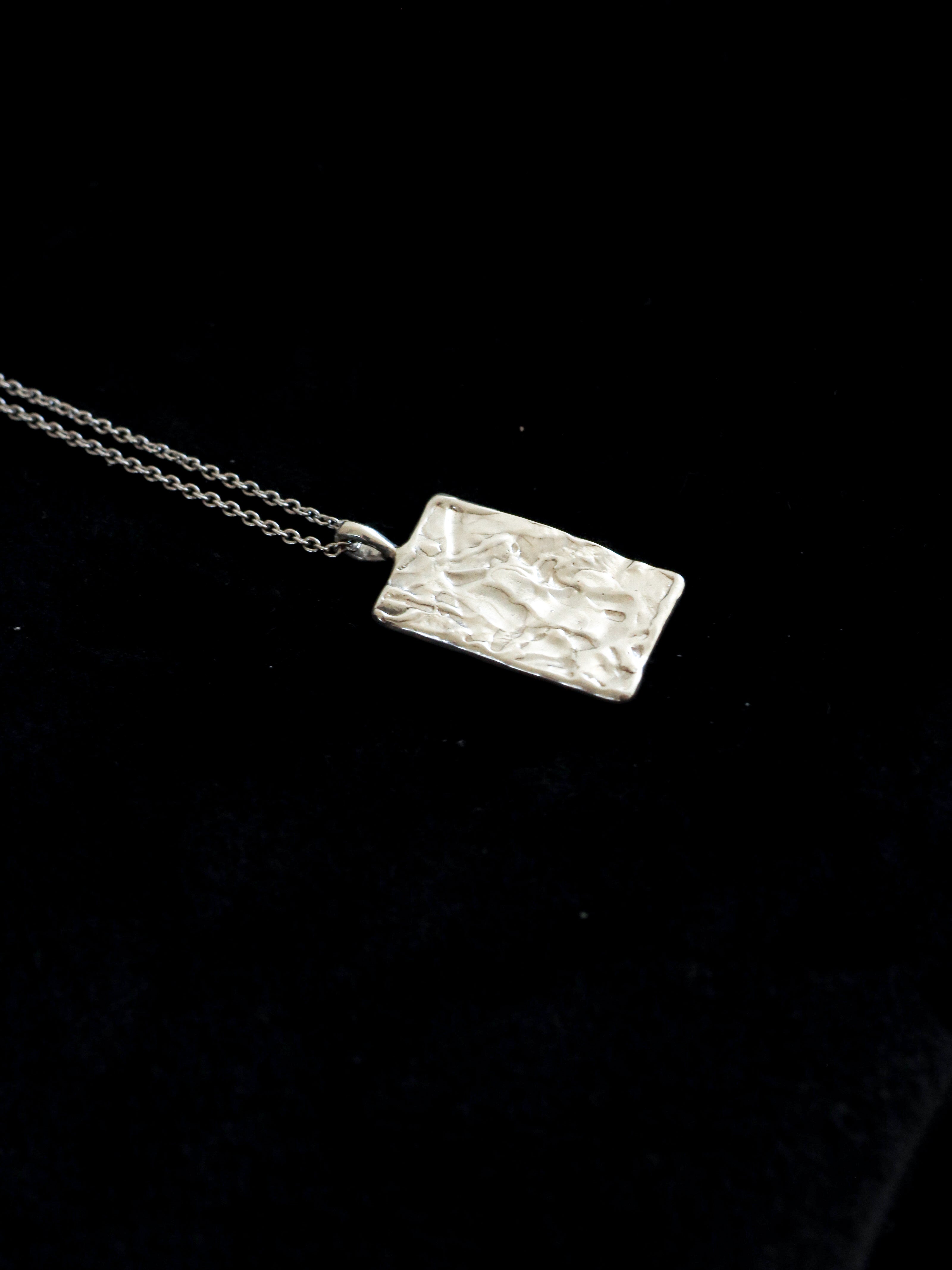 Handcrafted from sterling silver (925). Suspended on a 50 cm silver chain. One side is raw and textured like natural stone — a reflection of earth’s untamed surface; the other is smooth and polished, catching the light with calm simplicity.
